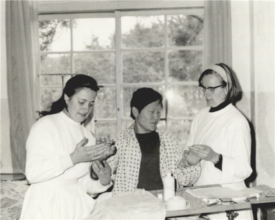 ▲소록도에서 환자를 돌보던 당시 마가렛 수녀(왼쪽)와 마리안느 수녀(오른쪽).[사진제공=사단법인 마리안느와 마가렛]