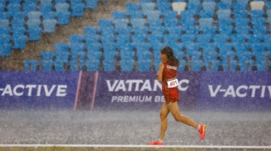 폭우도 못 막은 '꼴찌의 질주'…"누구나 목적지에 도착할 수 있어" 폭우 뚫고 달리는 캄보디아의 보우 삼낭 선수. [사진 제공=국제 올림픽 위원회(IOC)]