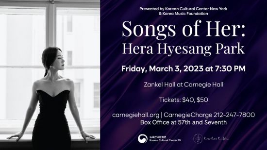 뉴욕한국문화원 관계자는 “전 세계가 주목하고 있는 차세대 디바인 박혜상 소프라노의 카네기홀 데뷔 공연을 통해 뉴욕 내 K-클래식의 위상을 한층 드높이는 계기가 될 것으로 믿는다”고 밝혔다. 공연 티켓은 카네기홀 홈페이지에서 구매할 수 있다. 자세한 내용은 문화원 홈페이지와 페이스북, 인스타그램을 통해서도 확인 가능하다.
