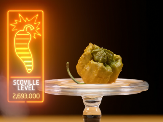 이번에 개발된 페퍼 X는 녹황색을 띠며 씹으면 씹을수록 흙냄새가 난다는 특징이 있다. 매운 정도를 나타내는 스코빌 지수(SHU)는 무려 269만이 넘는 것으로 알려졌다. [사진출처=기네스 월드 레코드]
