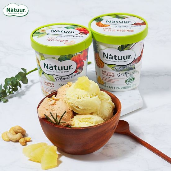 Natuur vegan ice cream comes in two flavors: the refreshing "Coconut Pineapple" and the savory "Cashew Vanilla." It features a differentiated design from existing Natuur ice creams, and to emphasize the brand's authenticity in line with the nature-friendly and eco-friendly concept, the plastic lid was replaced with paper material.