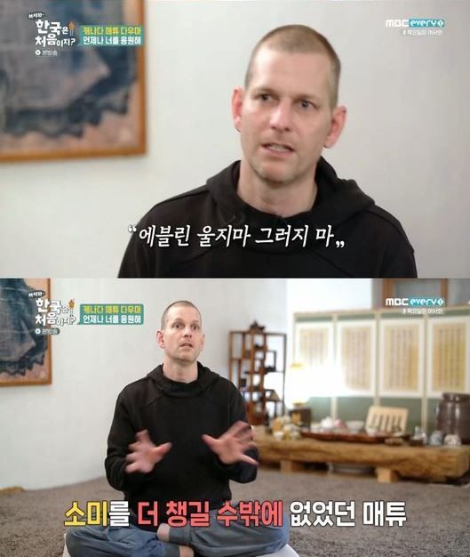 When Evelyn shed tears while practicing 'Bulmudo' with friends her age, Matthew comforted her, saying, "You wanted to do well, but your body didn't follow, so you must have felt frustrated and unfair."
