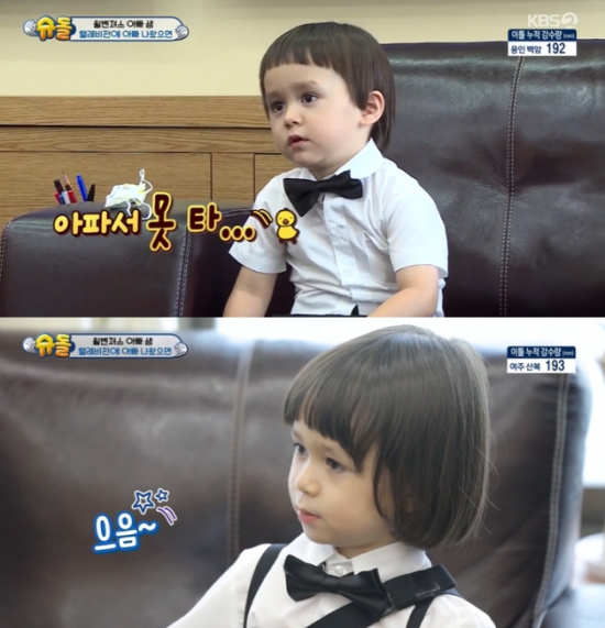 After some thought, William simply answered, "KBS." Then President Yang, revealing himself as a fan of 'The Return of Superman,' asked Bentley, "You ride your kickboard really well, right?" But Bentley replied, "I can't ride it because it hurts."