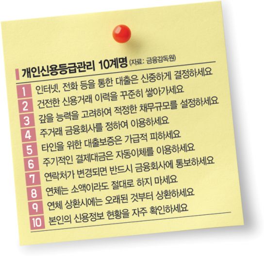 Above all, to manage credit, it is necessary not to be delinquent even on small amounts. Delinquency information is the most important factor negatively affecting credit ratings. If you are delinquent on an amount of 100,000 KRW or more for more than 5 business days, your credit score or rating will drop. If delinquency is unavoidable, repaying the oldest delinquent account first can minimize the disadvantages caused by delinquency. This is because the longer the delinquency period, the more negatively it affects the credit rating.