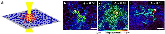 The research team developed a femtosecond laser (a laser that compresses energy to increase intensity and emits light for one quadrillionth of a second) strong and focused enough to stimulate colloidal glass particles sized 1 to 100 μm. They then stimulated a single glass particle and analyzed the pattern of movement spreading to surrounding particles.