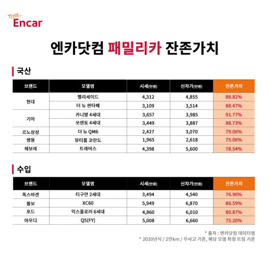 Encar.com, the largest car trading platform in Korea, announced on the 19th that based on big data analysis of residual values of popular 2020 models of mid-to-large SUVs and MPVs, the domestic car with the highest residual value was the Carnival, and the imported car with the highest residual value was the Volvo XC60.