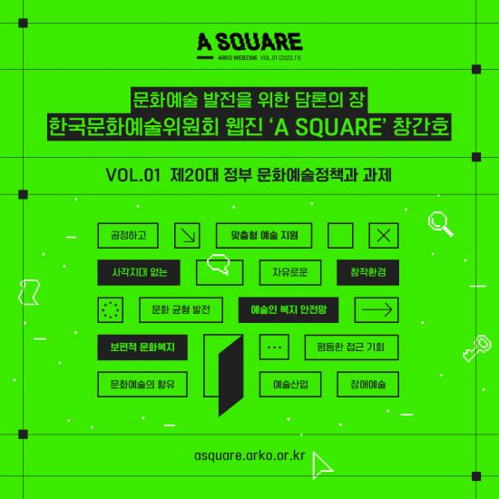 An official from the Arts Council said, "We intensely deliberated on the theme for the inaugural issue of the webzine and thoughtfully considered every single word," adding, "We plan to do our best so that A SQUARE can develop as a medium that contributes to a fair and sustainable cultural arts ecosystem as an open public forum in the arts field."