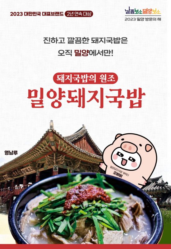 To commemorate winning the Korea Master Brand Awards for two consecutive years, the city will hold the Miryang Pork Soup Mukbang Certification Event "Miryang Pork Goodbabi Treats You!" from April 19 to May 8.