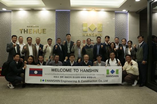 Hanshin Engineering & Construction announced on the 20th that local officials who commissioned the 'Laos Pakse Embankment Construction' recently visited its headquarters in Seocho-gu, Seoul.