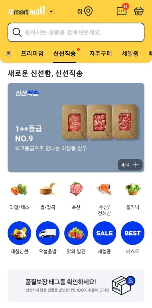 Following the 'Freshness Guarantee System' applied to its own fresh food (SSG Delivery departing from the automated logistics center Neo and Emart PP Center), SSG.com newly introduces the 'Quality Guarantee System' to ensure the quality of partner products listed in the Fresh Direct Pavilion (direct delivery from production areas). If customers receive products that are not fresh, they can easily get a refund by uploading photos of the product through the SSG.com application (app) without going through the customer center reception process.