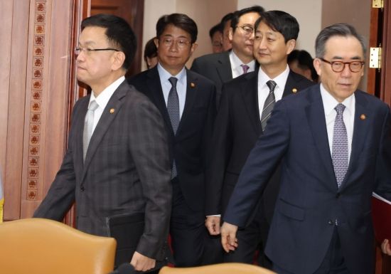 ![[Photo] Deputy Prime Minister Choi Sang-mok and Cabinet Members Heading to the Meeting Room](https://cphoto.asiae.co.kr/listimglink/1/2024110707554189639_1730933741.jpg)