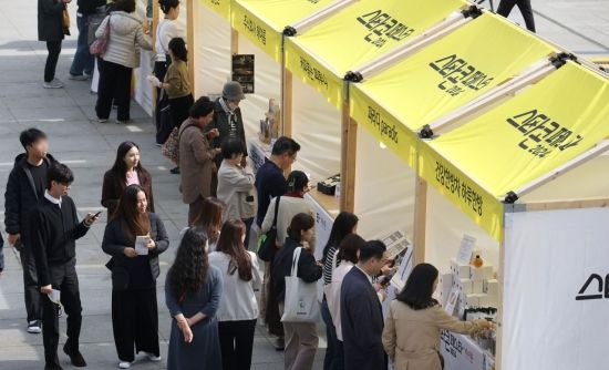 On the 28th, citizens visiting the 'Starcon Festa 2024' held at the playground in Gwanghwamun Square, Seoul, are browsing excellent products from small business owners. Photo by Jo Yong-jun