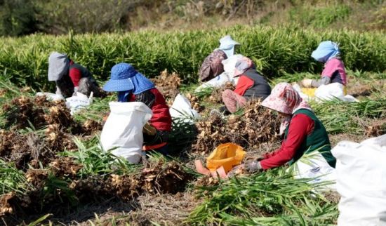 Farmers harvesting ginger in Beopsan-ri, Sowon-myeon, Taean-gun, Chungnam on the 5th. Photo by Taean-gun