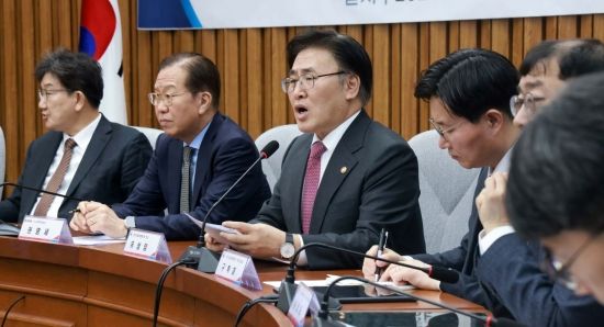 Yoo Sang-im, Minister of Science and ICT, is speaking at the ruling party-government meeting to strengthen AI competitiveness held at the National Assembly on the 18th.