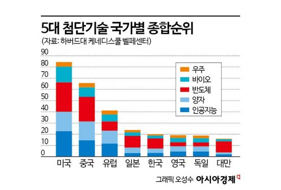 According to the Korea Biotechnology Association's Bioeconomy Research Center on June 9, the Belfer Center at Harvard Kennedy School released the "Core and Emerging Technology Index," in which South Korea ranked fifth overall, based on its strength in the semiconductor sector. The United States and China overwhelmingly occupied the first and second places in the five key technologies: artificial intelligence (AI), bio, semiconductors, space, and quantum.