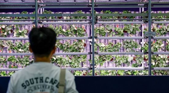 On July 16, a visitor at the 3rd Agri-Food Tech Startup Expo held at COEX in Gangnam-gu, Seoul, observes an energy-saving plant factory.