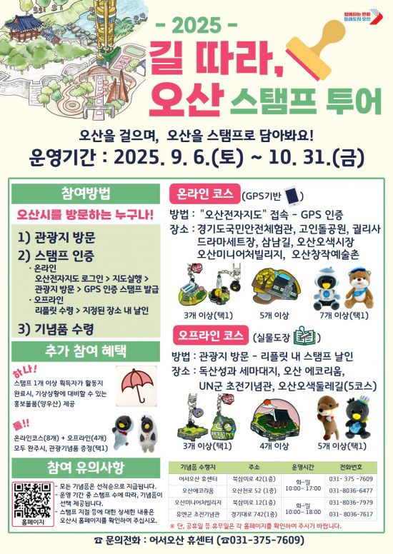 Osan City in Gyeonggi Province will host the "Along the Road, Osan" stamp tour from September 6 to October 31, in celebration of the autumn travel season.
