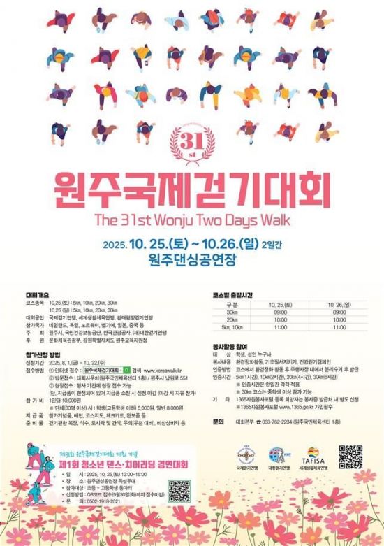 The 31st Wonju International Walking Festival, the largest walking event in South Korea certified by the International Walking Federation, will be held in grand fashion across Wonju, the birthplace of Korea’s walking movement, for two days on October 25 and 26, 2025.