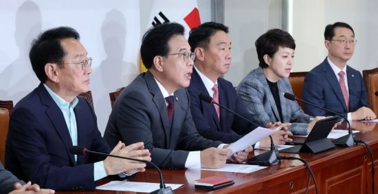 Song Eonseok, the floor leader of the People Power Party, speaks during a party strategy meeting held at the National Assembly on September 26.