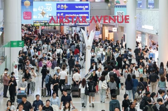 On October 2, ahead of the Chuseok holiday, the duty-free area of Incheon International Airport Terminal 1 is crowded with travelers.