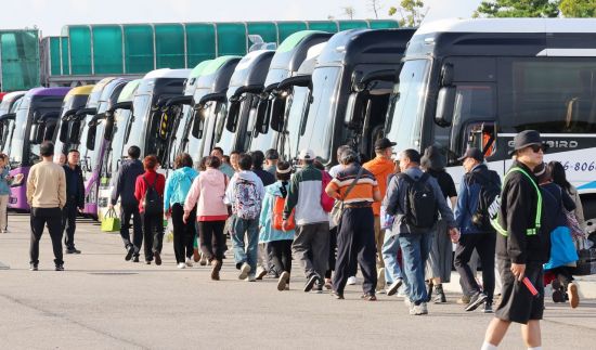 On the morning of the 29th, the first day of visa-free entry for Chinese group tourists, Chinese group cruise tourists arriving at Incheon Port International Cruise Terminal in Yeonsu-gu, Incheon, were heading to buses. From this day until June 30 of next year, Chinese group tourists of three or more people recruited by designated domestic and international travel agencies can tour Korea visa-free for 15 days. Jeju Island maintains the previous policy of 30 days visa-free for both individual and group tourists. Yonhap News