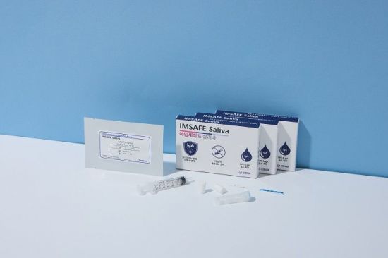 'IMSAFE Saliva' is the world's first product that can measure IgA concentration using only saliva, without the need for specialized equipment. It differentiates itself from conventional blood-based tests by allowing individuals to easily check their immune status. With just a small amount of saliva (4 to 5 drops), results can be obtained in about 15 minutes, and its non-invasive method eliminates the need for blood sampling.