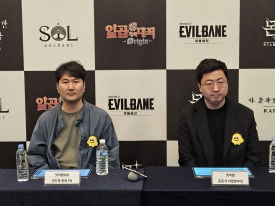 Kwon Do-hyung, General Producer of Netmarble Neo (left), and Moon Jun-gi, Head of Business at Netmarble, are conducting an on-site interview for "Solo Leveling: Karma" at "G-Star 2025," which opened on the 13th at BEXCO in Busan. Photo by Noh Kyung-jo