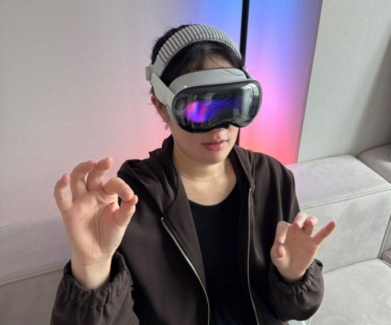 I found myself standing in the middle of a snow-covered field. Snowy mountains stretched out in all directions, everything blanketed in white. The scene was so vivid that I almost felt the chill in the air. In reality, though, I was seated at a cafe near Gwanghwamun in Seoul. The snowy landscape was a virtual space created by the Apple Vision Pro, an extended reality (XR) device worn on my head. Ahead of its domestic release on November 28, I had the chance to experience the new Vision Pro firsthand, and its realism was impressive enough to make me think, "This is really possible." This is thanks to the upgrade with the next-generation M5 semiconductor chip.