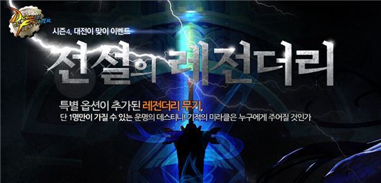 오는 29일부터 내달 12일까지 `레전더리(Legendary) 아이템 사전`이란 이름의 이벤트를 진행하고, `대전이`에서 새롭게 선보일 신규 레전더리 아이템 28종의 사전 획득 기회를 제공한다.