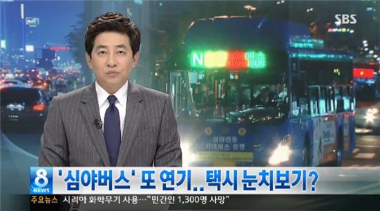 ▲심야버스 운행연기(출처: SBS 8뉴스 방송화면 캡처)[아시아경제 온라인이슈팀] 심야버스 운행 연기에 시민들의 불만이 커지고 있다. 운행 연기는 두 번째다.