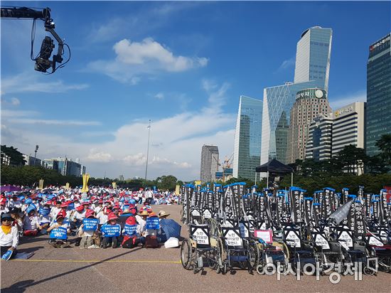 한국노인복지중앙회는 이날 오후 4시부터 여의도공원에서 ‘문재인 대통령 본인부담상한제 공약 이행 촉구’ 집회를 개최했다. 이날 집회에는 경찰 추산 4500여명이 모였다.