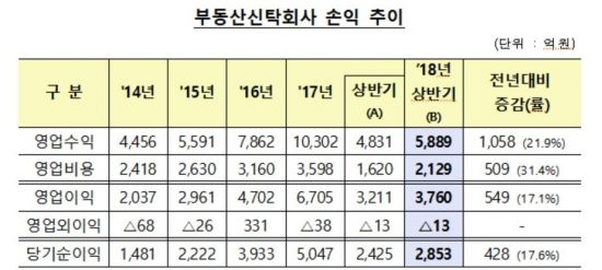 부동산신탁사, 상반기 순이익 2853억원 '사상 최대'