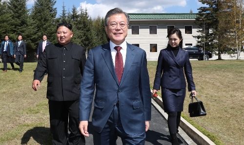 /평양사진공동취재단[아시아경제 부애리 기자] 문재인 대통령과 김정은 북한 국무위원장의