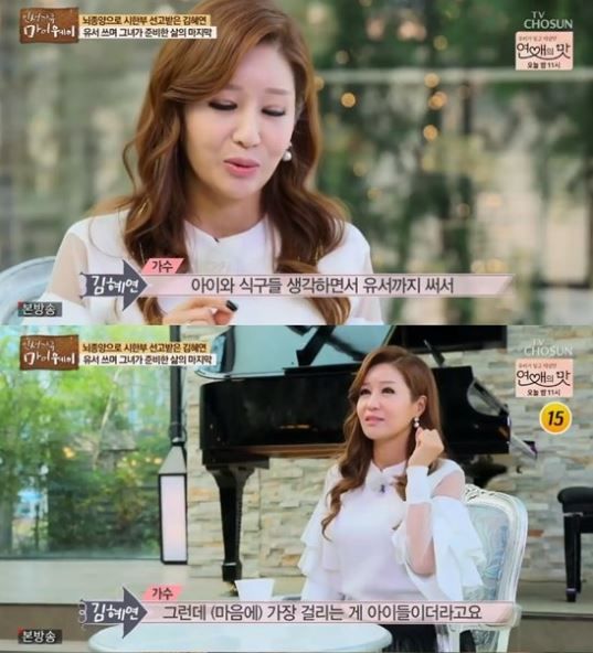 '인생다큐 마이웨이' 가수 김혜연 / 사진=TV조선 방송 캡처가수 김혜연이 방송을 통해 뇌종양을 극복한 사연을 전했다.