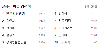 5일 오전 6시40분께 포털사이트 다음 실시간 검색어 1위에는 '언론검찰광기'가 올라있다.