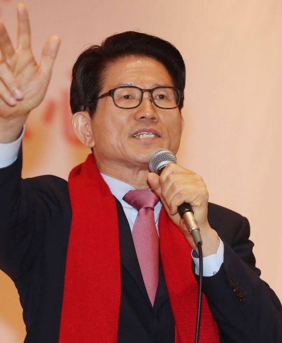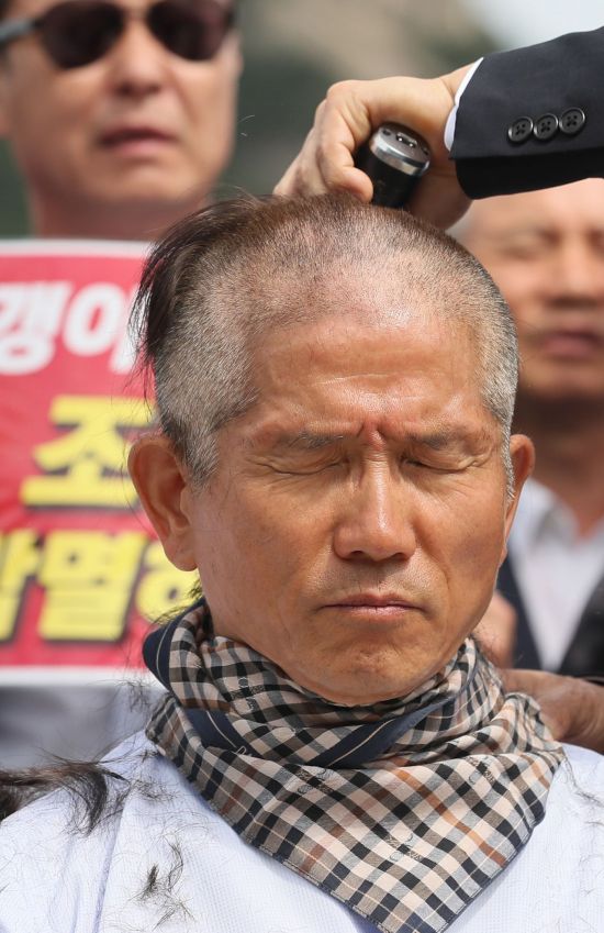 김 전 지사는 17일 오전 11시 청와대 분수대 앞에서 삭발식을 치렀다.