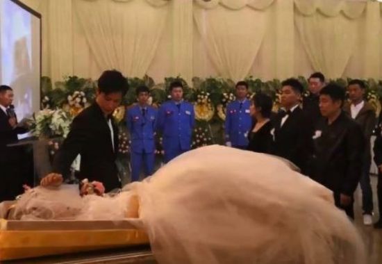 두 사람의 결혼식은 지난 20일 중국 랴오닝성 랴오둥반도 남단부에 위치한 다롄의 한 장례식장에서 진행됐다. 결혼식에는 가족들과 친구들이 참석했다.