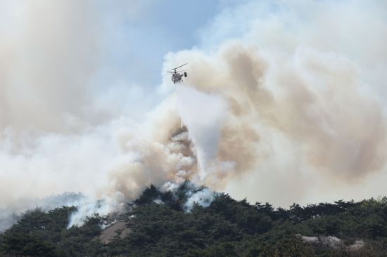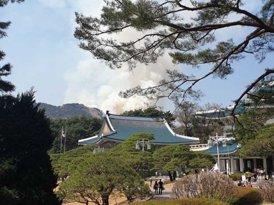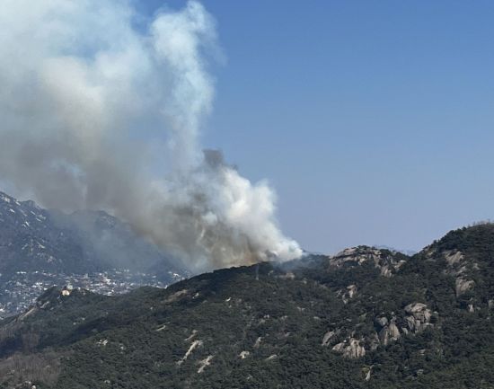 2일 오전 11시53분께 서울 종로구 부암동 인왕산 8부 능선에서 불이 나 소방 당국이 진화작업을 벌이고 있다. 소방 당국은 낮 12시29분께 대응 1단계를 발령하고 차량 35대와 인력 132명을 투입, 불길을 잡고 있다.