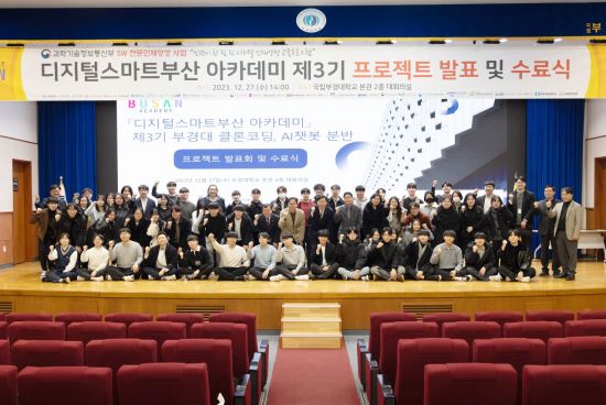 국립부경대학교 디지털스마트부산 아카데미 사업단(단장 노맹석)은 27일 오후 대학본부 2층 대회의실에서 ‘디지털스마트부산 아카데미’ 제3기 프로젝트 발표회·수료식을 개최했다.