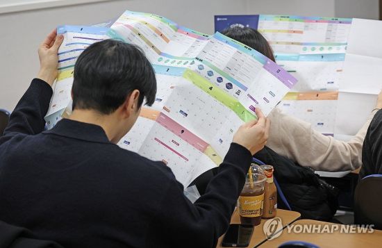 지난달 13일 오후 서울 서초구 메가스터디 학원에서 학생이 '의대 증원에 따른 입시 판도 분석 설명회'를 기다리며 '2025 입시 일정표'를 보고 있다.[사진=연합뉴스]메가스터디교육은 오는 18일 서초 의약학 전문관에서 의대 준비 직장인 대상 야간특별반인 '수능 ALL in 반'을 열기로 했다. 수강료는 월 70만원으로, 우선 20명 인원으로 개강할 예정이다.