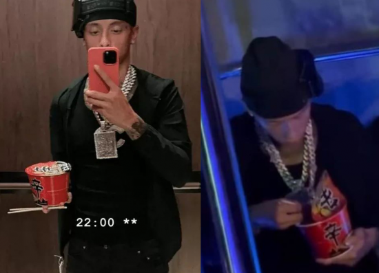 영국의 유명 래퍼 센트럴 씨(Central Cee)가 지난해 내한 당시 신라면을 들고 있는 모습 [이미지 출처=센트럴 씨 인스타그램 캡처, 온라인커뮤니티 갈무리]