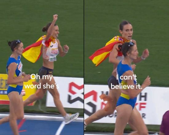 유럽육상선수권대회 여자 경보 20㎞ 결선에서 한 선수가 너무 이른 세리머니를 펼치다 메달을 놓쳤다. 해당 영상이 온라인 커뮤니티 등에 공유되자 누리꾼들은 "너무 일찍 축배를 든 결과"라면서도 "전쟁 중인 우크라이나에 힘이 됐을 것"이라고 반응했다.