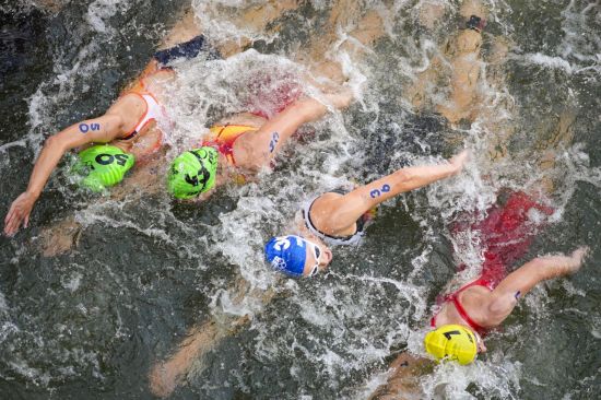 지난달 31일(현지시간) 프랑스 파리 센강에서 열린 올림픽 트라이애슬론 모습. [사진 파리=AP 연합뉴스]미국 대표팀의 세스 라이더는 "파리에 온 후 일부러 손을 씻지 않았다. 대장균에 익숙해지기 위해 화장실을 다녀온 후에도 손을 씻지 않는다" 뼈있는 농담으로 센강 수질을 비판했다. 적응이 부족했던 탓일까. 라이더는 1시간 47분 53초로 29위에 그쳤다.
