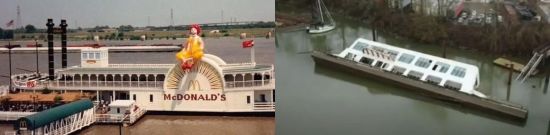 한때 세계에서 가장 많은 인파가 찾았던 캐나다의 맥도날드 매장인 '맥바지(McBarge)'가 34년간 방치된 끝에 결국 침몰했다. 맥바지는 1986년 캐나다 밴쿠버 엑스포 때 만든 부유식 패스트푸드점이다. 더 선맥바지의 정식 명칭은 'Seaborne ll'이다. 이는 1986년 밴쿠버 엑스포를 위해 특별 제작했다 당시 7개월의 행사 기간 동안 세계에서 가장 붐비는 맥도날드 매장 가운데 하나로 꼽혔다. 그러나 엑스포 종료 후 이 매장은 운영을 중단했고, 이후 영업을 재개하지 못했다. 그간 술집이나 다이빙 체험관 등으로 다시 활용하려는 여러 계획이 있었으나 선박의 소유자가 바뀌고 이전되면서 모두 무산됐다. 이 바지선은 엑스포 계류장 등에 있다가 2015년 마지막으로 현재 위치로 옮겨졌는데, 그 이후로는 계속 녹이 슨 채로 남게 됐다.