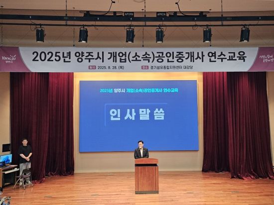 경기 양주시는 지난 28일 경기섬유종합지원센터 대강당에서 관내 개업·소속 공인중개사 180여 명을 대상으로 '2025년 공인중개사 연수교육'을 실시했다고 30일 밝혔다.